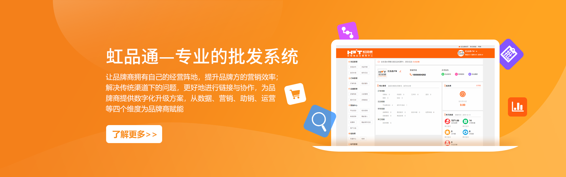 南寧虹品通軟件科技有限公司成立于2014年,是一家開(kāi)發(fā)軟件技術(shù)服務(wù)公司。公司總部位于中國(guó)綠城南寧市,專(zhuān)注軟件行業(yè)系統(tǒng)支持和供應(yīng)鏈大數(shù)據(jù)開(kāi)發(fā),并將其應(yīng)用于商業(yè)領(lǐng)域。掌握供應(yīng)鏈系統(tǒng)研發(fā)、商品流通大數(shù)據(jù)、批發(fā)零售商城等核心技術(shù),并持有多項(xiàng)技術(shù)專(zhuān)利和著作權(quán)。公司致力于幫助生產(chǎn)廠家、商品流通、銷(xiāo)售型企業(yè)向互聯(lián)網(wǎng)化轉(zhuǎn)型升級(jí),利用互聯(lián)網(wǎng)獲取客戶、洞察市場(chǎng)、服務(wù)客戶